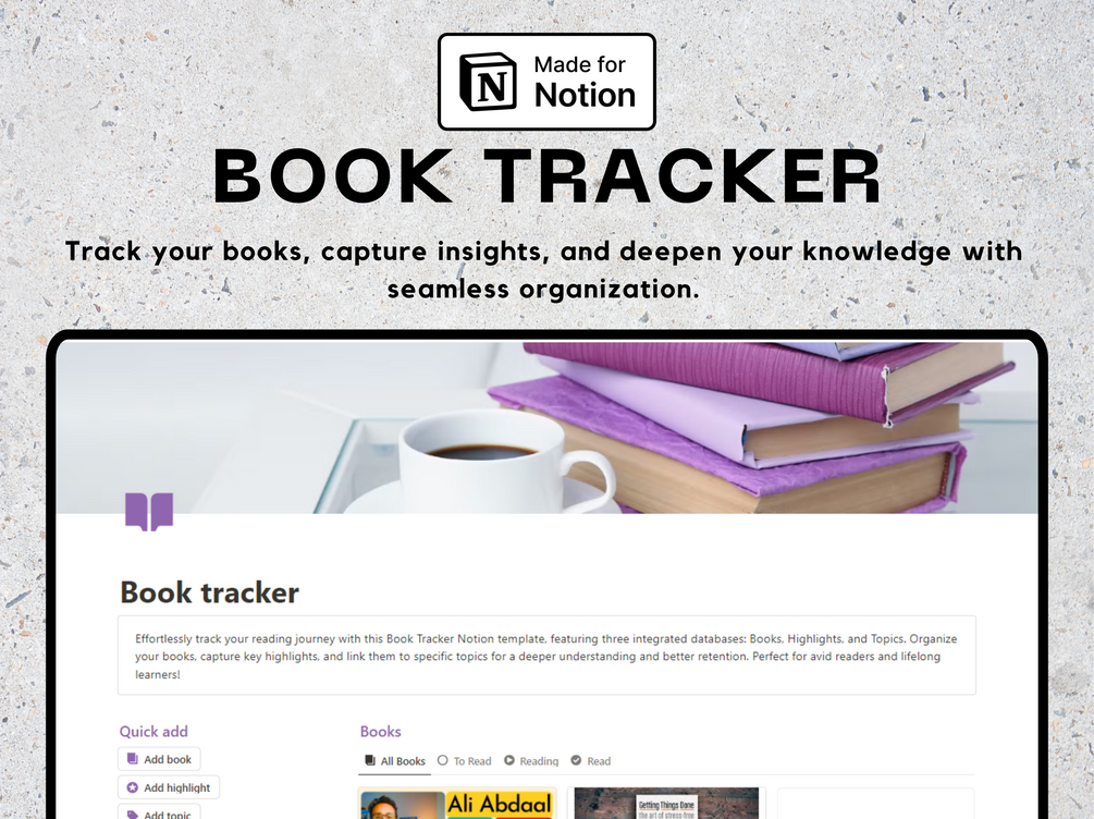 Enhance your reading experience and stay organized with this comprehensive Book Tracker Notion template.